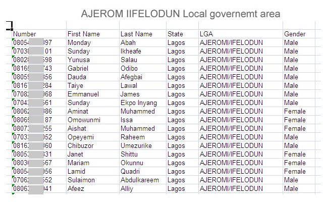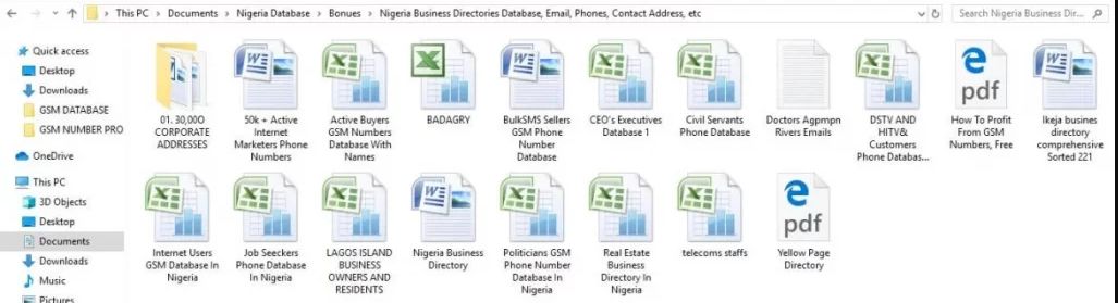 In this package we are offering you the FULL, UPDATED and DIRECT DATABASE of the GSM contacts of Nigerians sorted out by their names and addresses. Also in this package we are also giving you the Updated Nigerian Business Directory Contacts.